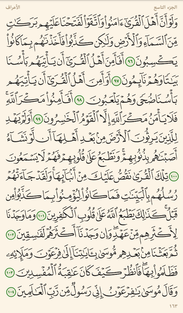 تفريغ سورة الأعراف من الآية 96 إلى الآية 104 ليدبروا آياته